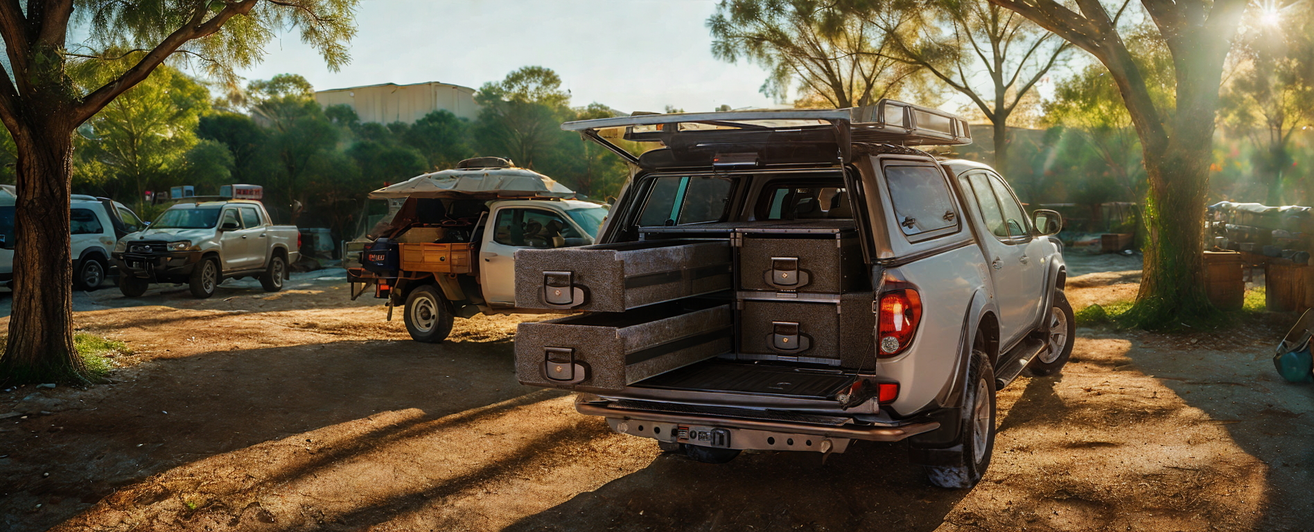 In addition to the conventional storage drawers, the Unity drawer system has also developed additional accessory storage functions, such as: high and low drawers combination, storage barriers and divider, roller drawer table and drawer kitchen, to maximize the storage utilization of the vehicle.